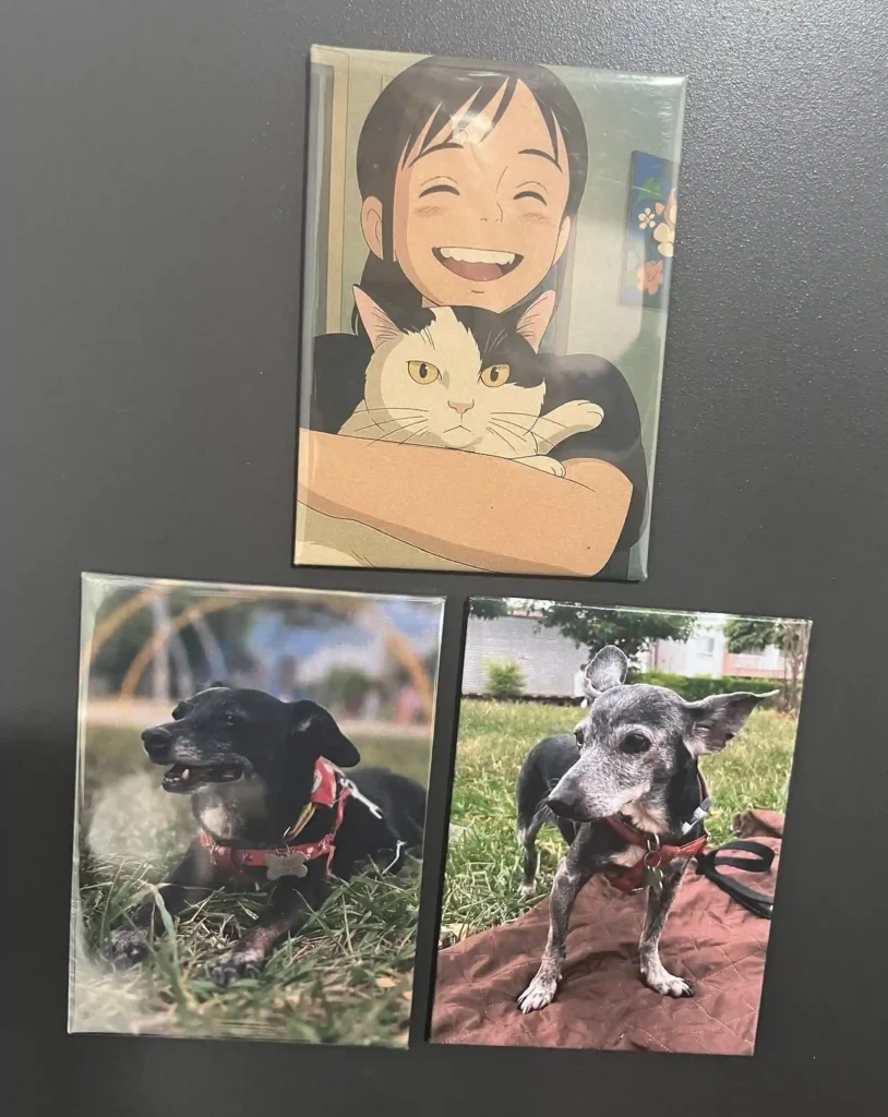 Esa donde sale con la lengua afuera o dormido de forma chistosa… Deja de guardar esos recuerdos solo en la galería. Convierte su foto en un imán que siempre esté a la vista, en la nevera o en tu espacio favorito. Porque si te hace sonreír, no debería estar escondida.